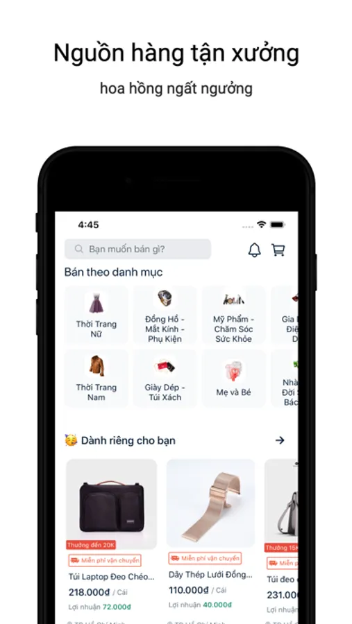 Ứng dụng bán hàng cộng tác viên với nguồn hàng tận xưởng, cho bạn hoa hồng cao ngất ngưởng.