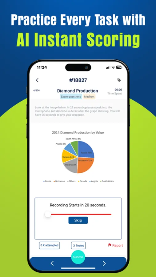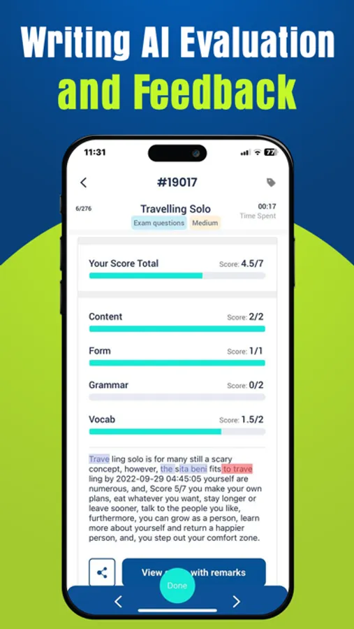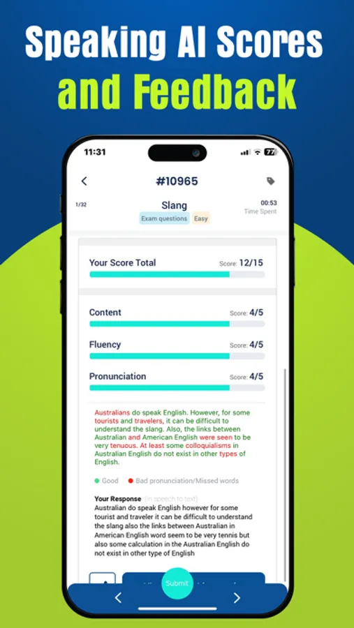 - Speaking and Writing feedback using Artificial Intelligence based on fluency, pronunciation, grammar, vocabulary and similar parameters similar to the actual PTE Exam