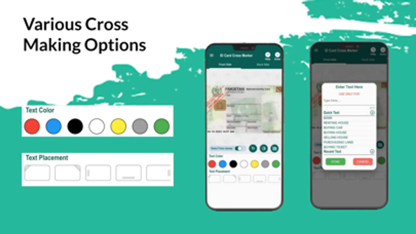 Do you want to protect your ID card or CNIC, business cards, driving license, passport, employee cards, smart cards, and many more from unauthorized use? Are you looking for a way to protect it digitally by cross marking it? Now you can cross mark and protect your digital image assets in your mobile phone. Using this app, just create and apply editable cross marks on your identity documents. You can make cross-marked cards or photos using this fantastic free visiting card application without buying the expensive one. There are many controls and effects in the NIC CROSS MARKER APP to create your customized cross mark, which you can rotate, resize, flip, save, and share on any shareable platform directly from the app. Get started now!