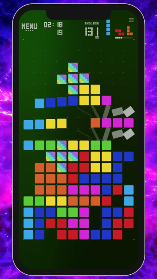 - When 10 block tiles are lined up horizontally, the line is completed and then the score is added
