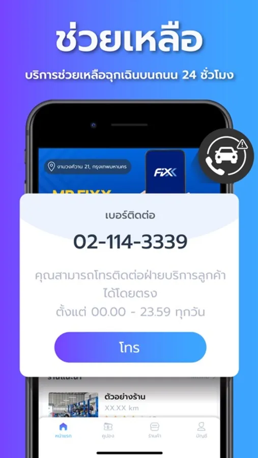 - FIXX 24/7: บริการช่วยเหลือฉุกเฉิน ติดต่อได้ตลอด24 ชม. สะดวก ง่าย รวดเร็ว ด้วยคุณภาพที่คุณวางใจ