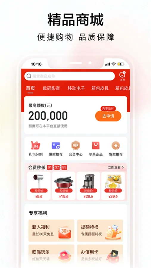 专注为用户提供优质产品体验,打造吃喝玩乐买样样都省钱的购物体验,并提供消费分期、现金分期等先享后付的支付体验。