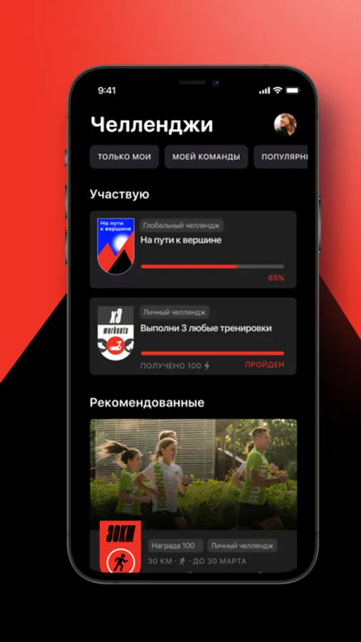 Онлайн-курсы командных и персональных тренировок каждый день. Челленджи с призами за активность и здоровый образ жизни.