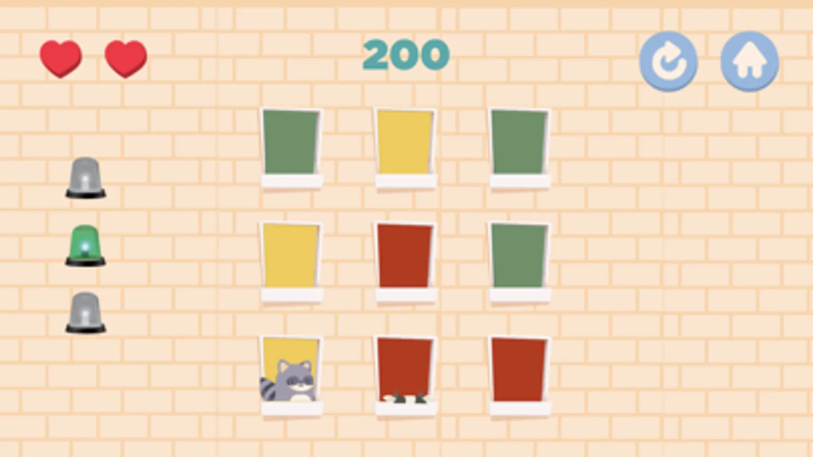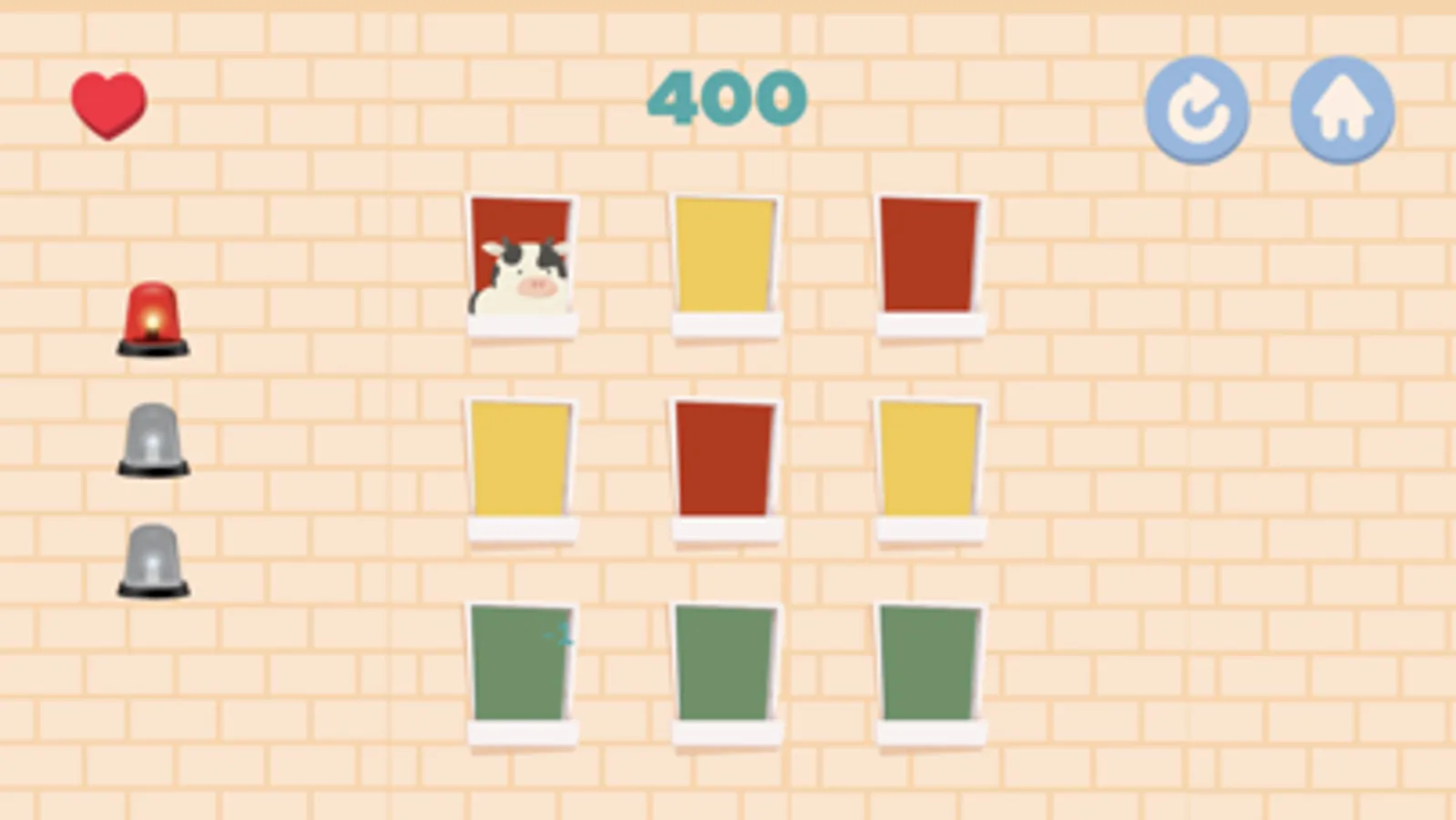 Observe the bright light and the windows with the same color of the animals crawling in. Use the hammer to smash them and help them by touching the location to hit the hammer to appear. You can only hit the animals that come up in the position of the cells of the same color as the light color. After a while, the light will turn off and change to another color.