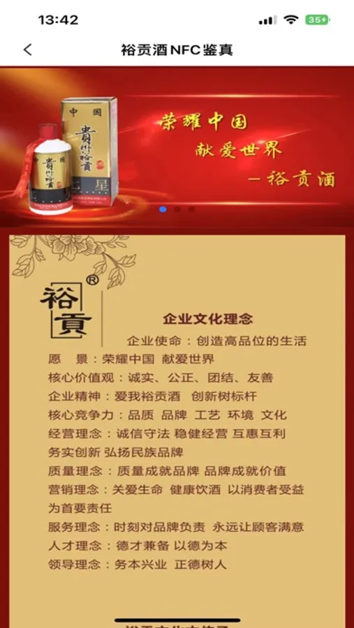 *扫一扫*:通过使用相机扫描瓶身上的三维码,获取码信息识别产品真伪;