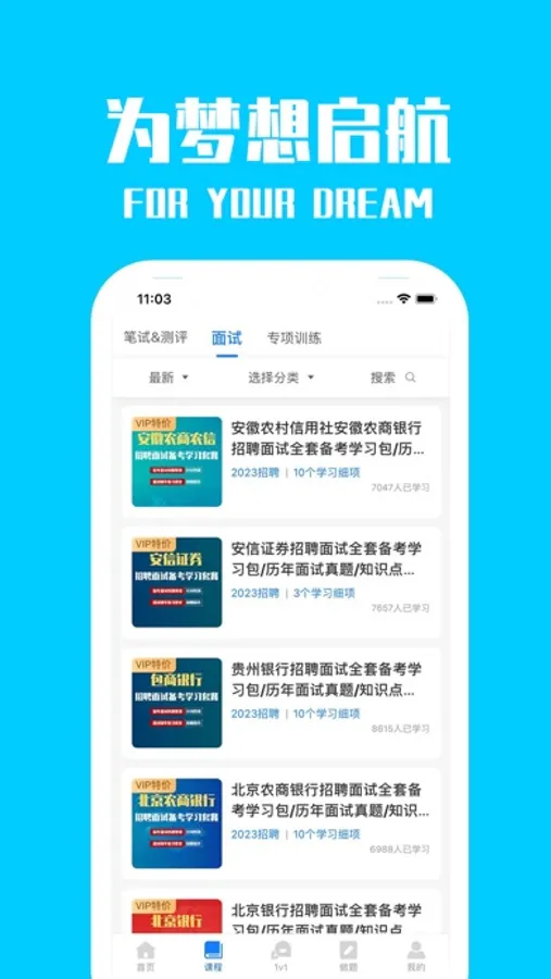 提供银行,投行,会计,咨询,快消,证券,保险,房地产,能源,电力,互联网,航空等行业各大公司笔试面试复习课程。