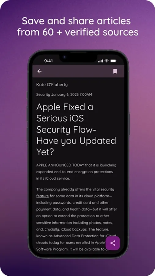 - Save time by getting all the important security news in a single app without having to search the internet or set up alerts.