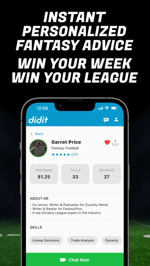 Connect instantly with the MOST ACCURATE Fantasy Sports Experts via 1:1 video chat on Didit.