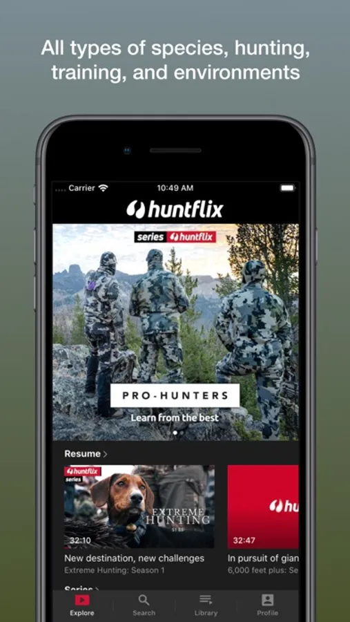 To access all features and content you can subscribe to Huntflix on a monthly or yearly basis with an auto-renewing subscription right inside the app.* Pricing can vary by region and will be confirmed before purchase in the app. In app subscriptions will automatically renew at the end of their cycle.
