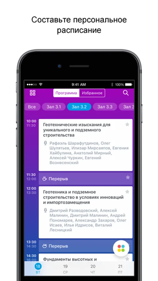 - смотреть программу в режиме реального времени и создавать свой ежедневник;