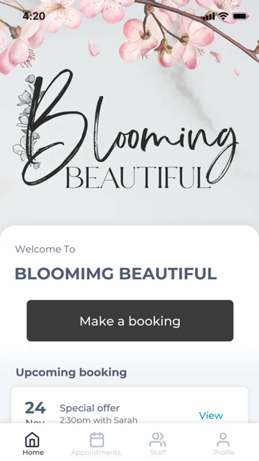 The Blooming Beautiful app makes booking your appointments and managing your loyalty points even easier. You're just a few taps away from feeling good and looking great!