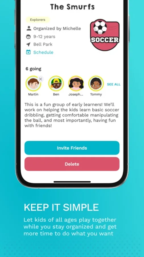 Pickup Sports for Families currently features easy-to-follow weekly instructions for Soccer, Baseball and Flag Football based on each group of kids playing level, which helps parents know what the group should learn each week. Parents and Caregivers can also create their own schedule of when and where to play so they are no longer tied to inconvenient practice and game times that make their weekdays hectic.