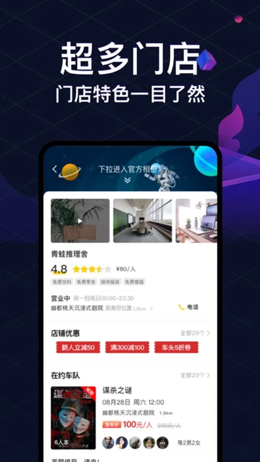 2.官方认证的入驻店家,精准的同城玩家群,立刻寻找合拍的小伙伴吧!