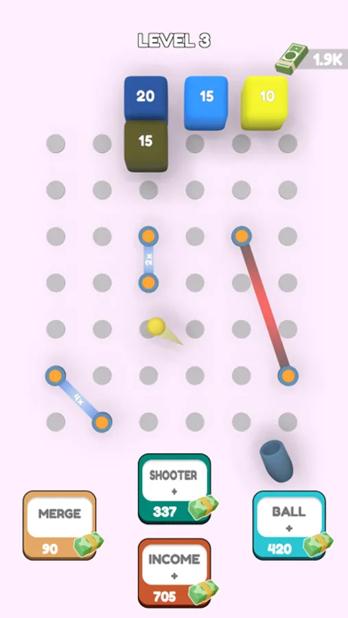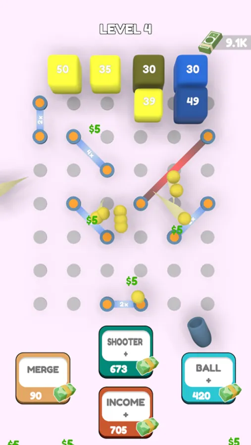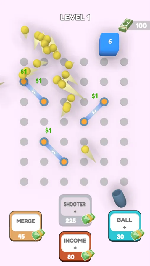 Merge multiplier flippers and send your balls higher by clicking and shooting them!