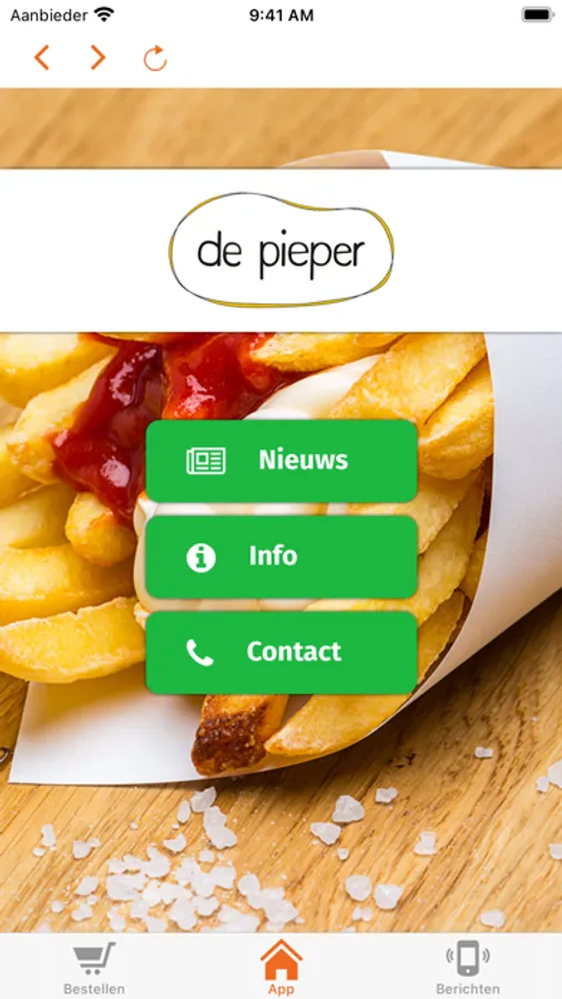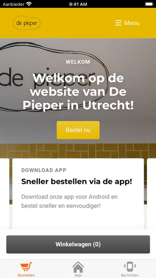 Download onze app en blijf op de hoogte van het laatste nieuws en de nieuwste acties, aanbiedingen en kortingen. Via onze app kunt u onze menukaart bekijken en direct vanaf uw telefoon uw bestelling plaatsen. U kunt via de app ook met iDEAL betalen!