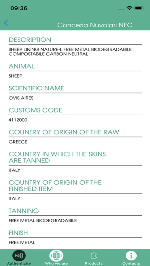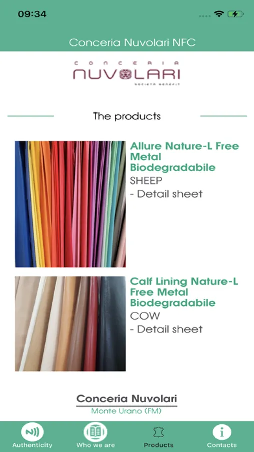 La app Conceria Nuvolari NFC ti consente di verificare l'autenticità dei prodotti della conceria. Il TAG Autentico è posizionato sul lotto di pelli.