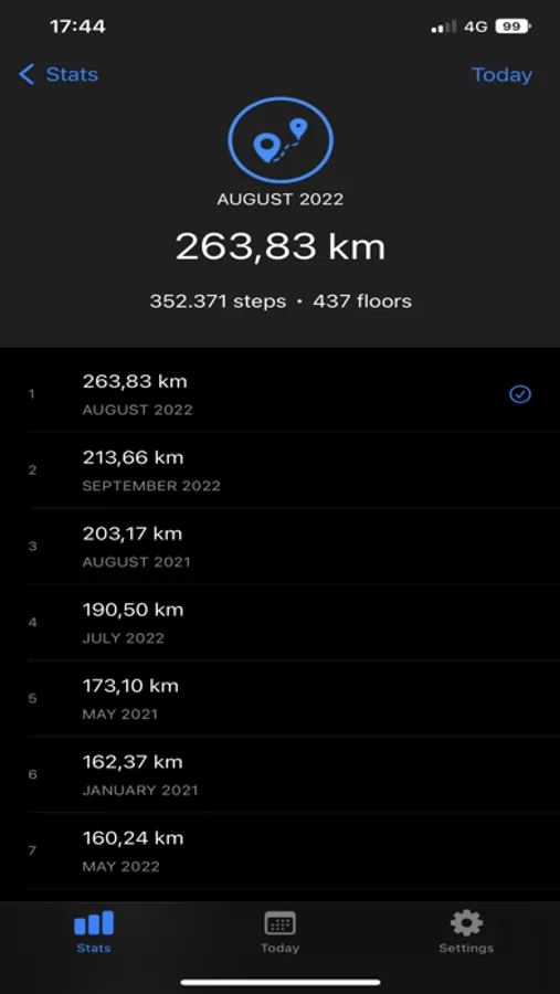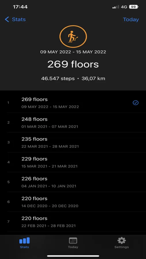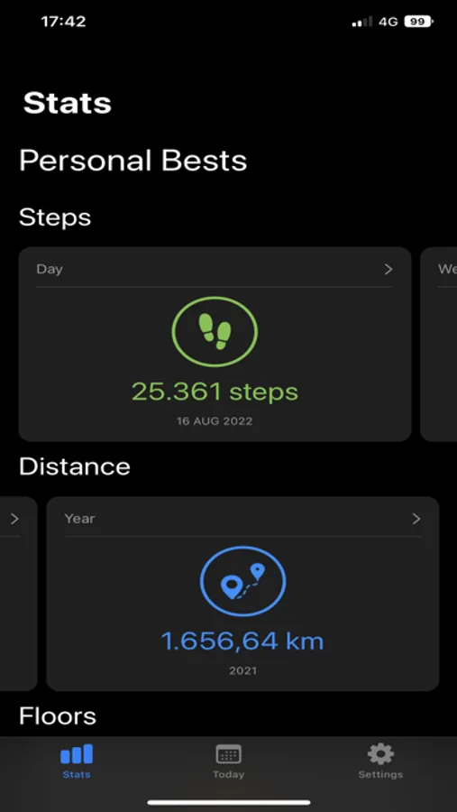 Dive deeper into your progress through the dedicated stats tab, where you can explore personal bests, cumulative totals, and more. Gain insights across various date ranges, including daily, weekly, monthly, and yearly views.