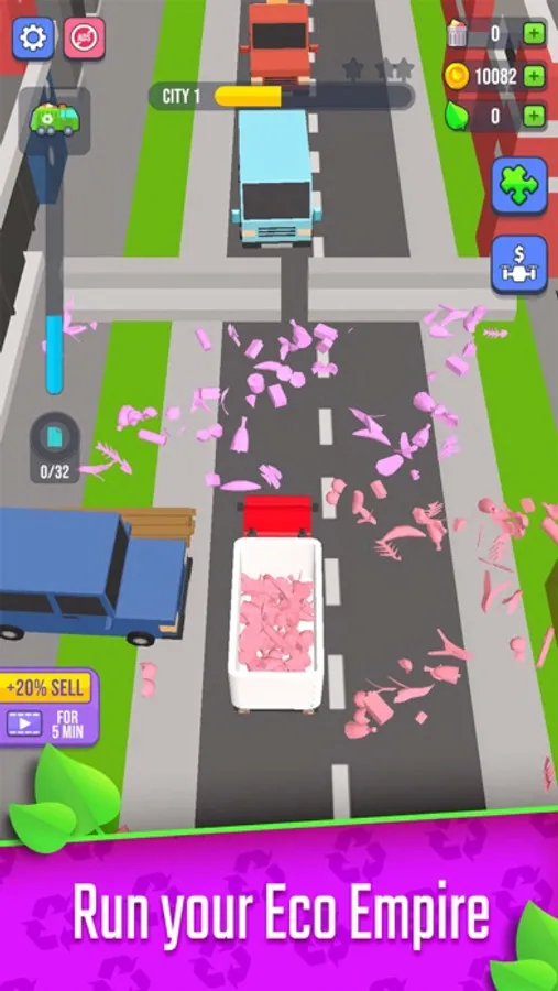 Let’s clean the world together! Join EMKA® - waste disposal company, on their quest to save our planet from getting covered in trash. Welcome to Garbage Truck City Tycoon. In this game you as a player take control of a recycling ECO truck, equipped with special vacuums that harvest garbage. By cleaning the environment you can invest in new trucks, upgrades and green technologies that will improve your gameplay. The main goal of this game is to highlight the importance of ecology. Various environments starting from forests, cities and deserts you will encounter in the game will show you how garbage crisis affects the environment. Features: