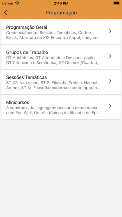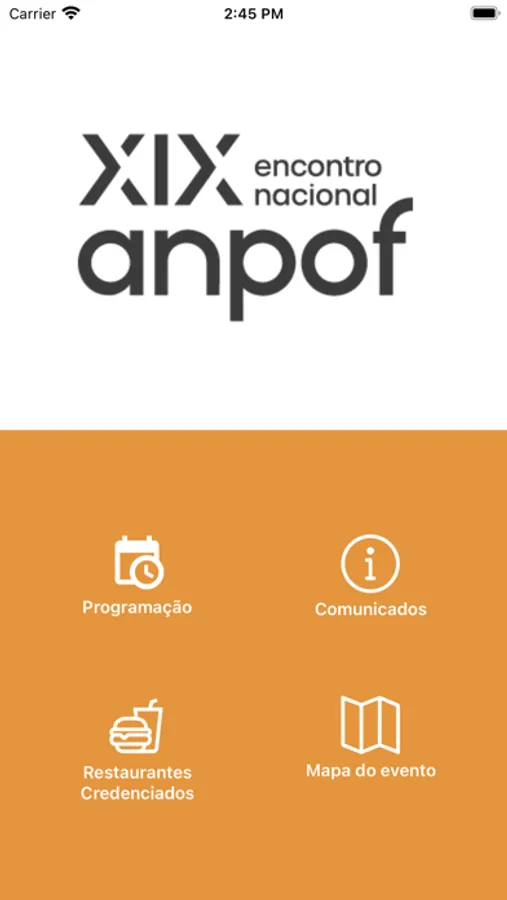 A Associação Nacional de Pós-graduação em Filosofia realiza entre 10 e 14 de outubro de 2022 seu XIX Encontro Nacional em Goiânia/GO. Neste aplicativo, estão reunidas todas as informações sobre programação, restaurantes credenciados e também pontos de localização no mapa da cidade de Goiânia para melhor orientar os participantes durante os dias do evento.