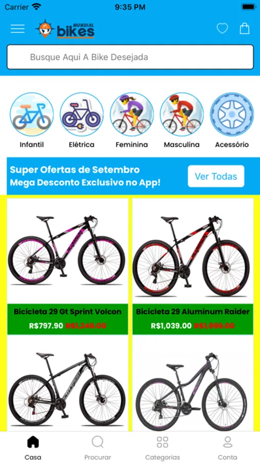 Buy Your Bike on the Mundial App and Get It Mounted. Installment, Discount Avista, Free Shipping all in one app. Bikes for all ages