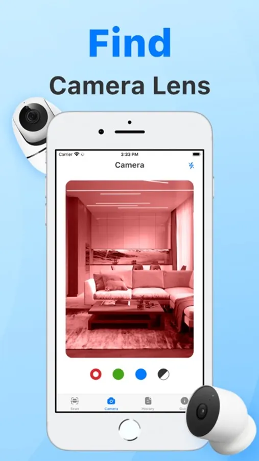 Hidden Camera Detector is an app that helps detect suspicious hidden security cameras in places around you, e.g. hotel rooms, apartments, changing rooms and more. It is designed to protect the privacy and ensure the security of a user’s personal space.