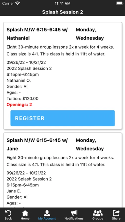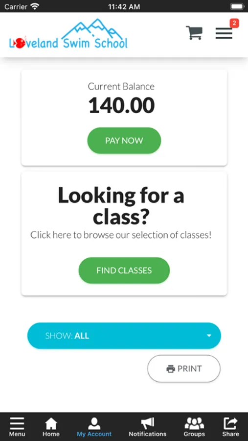 The Loveland Swim School app will allow you to manage your lesson schedule, access registration, and receive quick updates. You'll also be able to see upcoming events and weekly reminders.