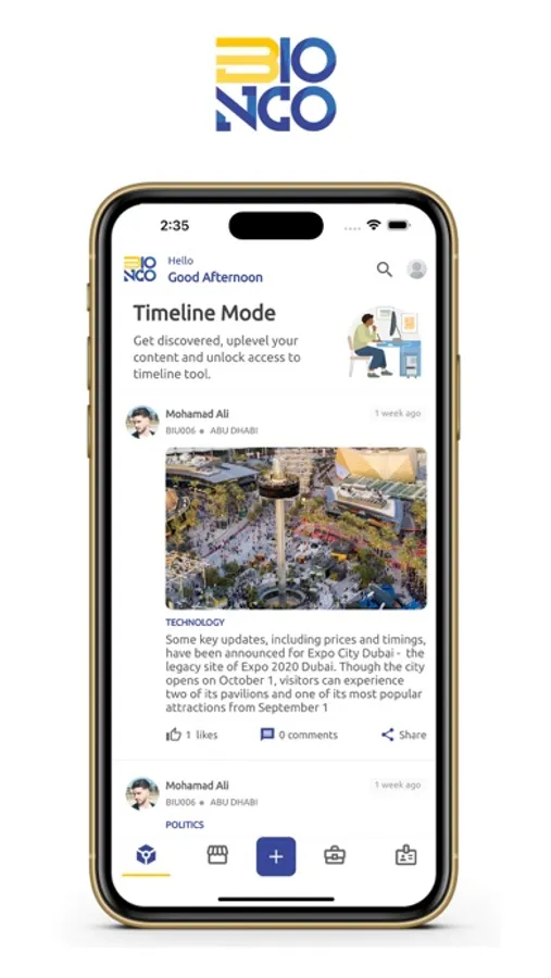 1. Newsfeeds (Business News articles) - Trending News and user can write their own business experience through this module.