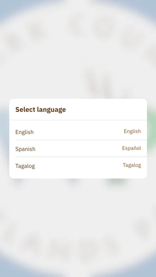 Tours and Park content are available in English, Spanish, and Tagalog.
