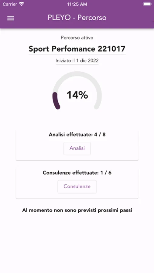- Progresso % del percorso intrapreso