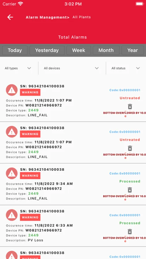 • Crown App immediately notify User when some Warning or Alarm occur in Inverter