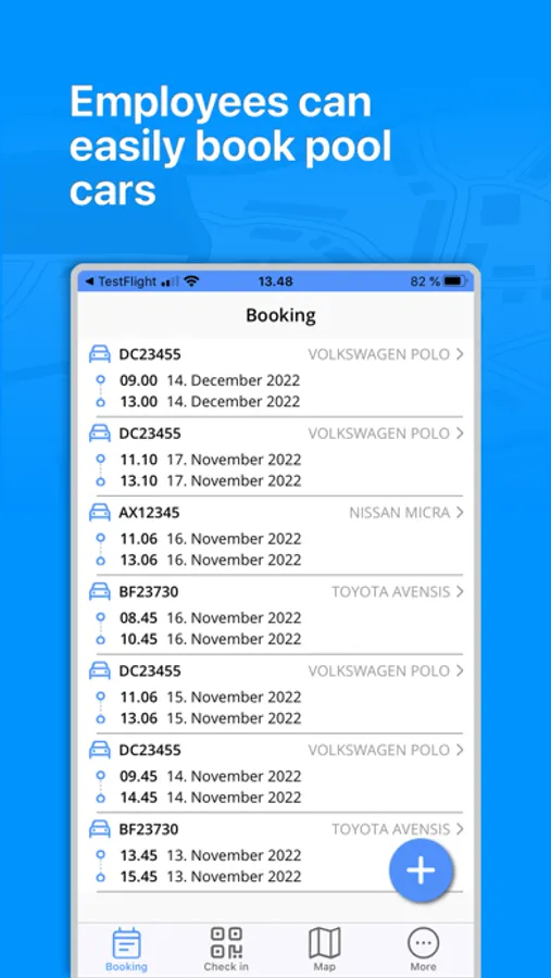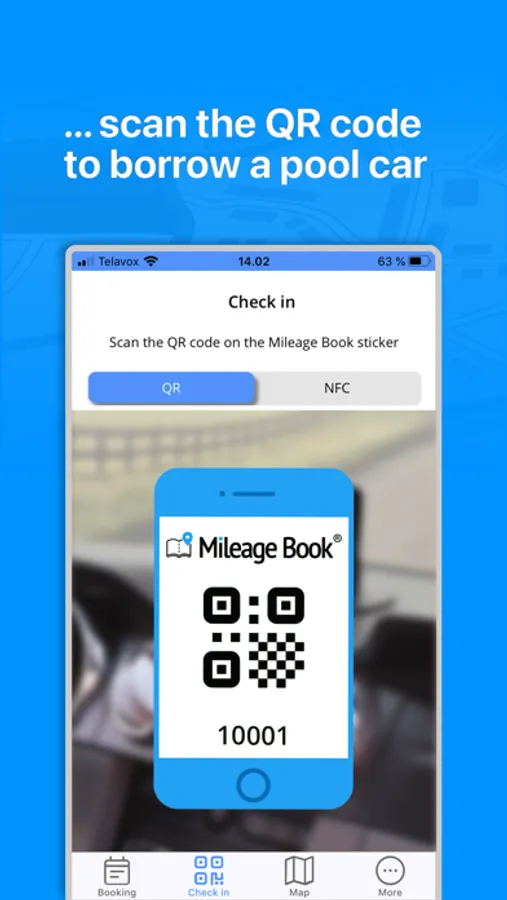 You can easily borrow a pool car with the app. Get into the pool car and scan the Mileage Book sticker with the app. Then you are ready to drive.