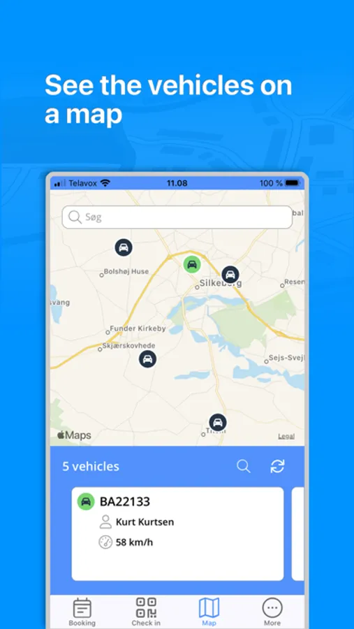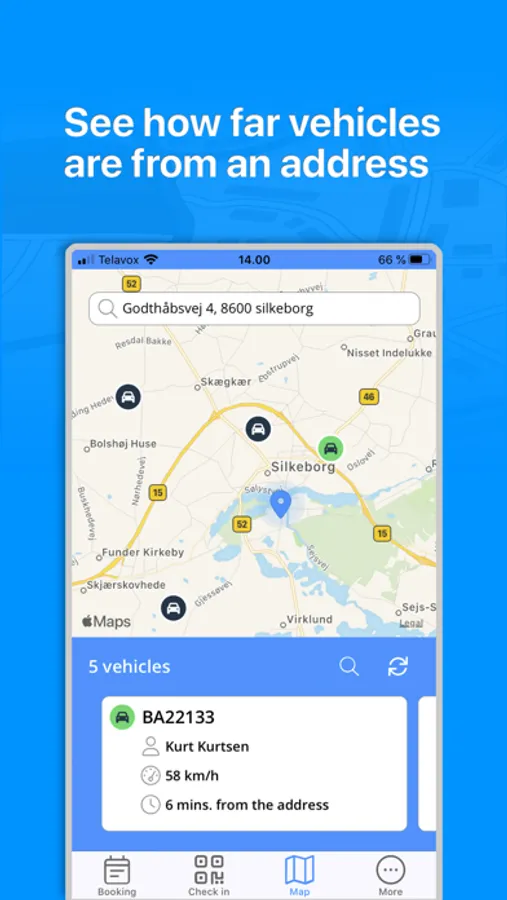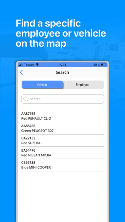 In the app, some employees can be given access to see where the organization’s vehicles are on a map.