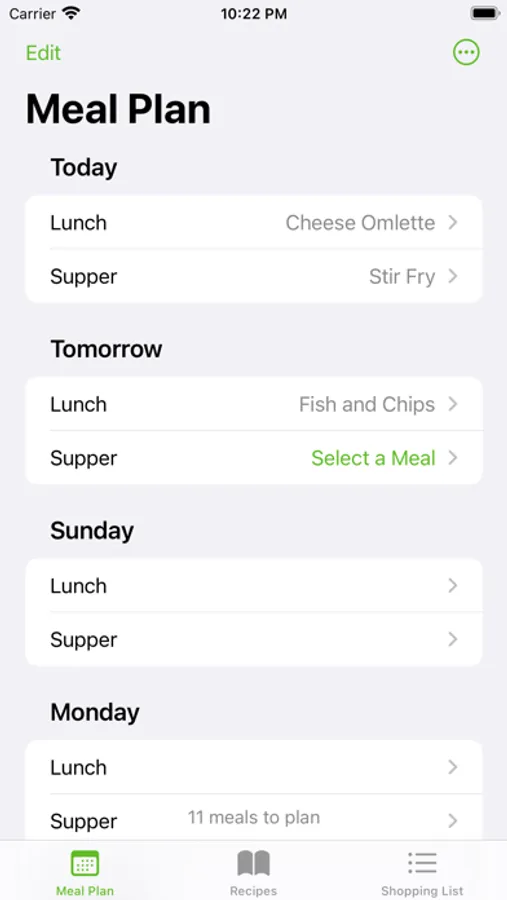 Make a meal plan each week and never worry about missing a meal again. You can repeat your plan every 2 weeks and only plan suppers if you prefer.