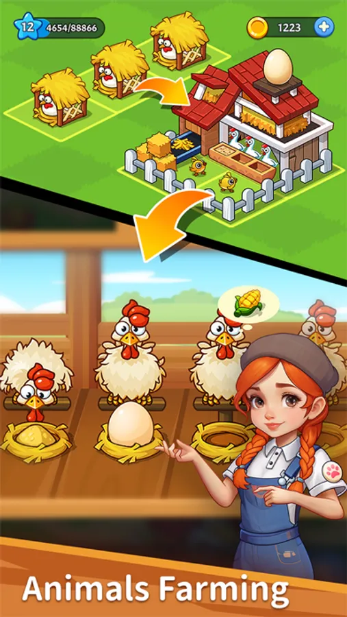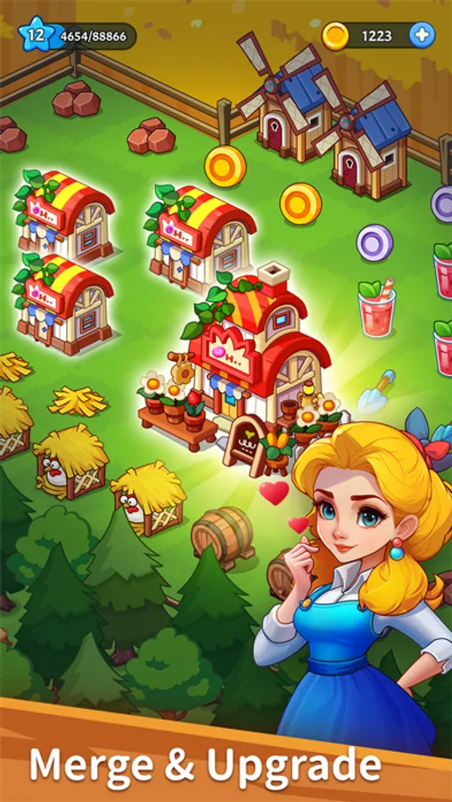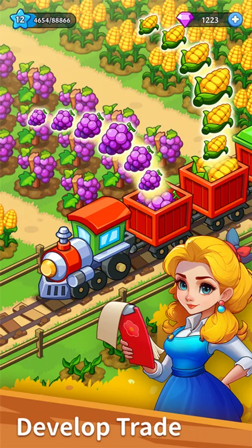 Welcome to Farm Party: Merge & Pet! Get ready to enjoy the fancy crit of planting, collecting, merging, fighting and more. Here, you can become a happy farmer, raise various animals carefully, farm happily, and meet other interesting residents. You can also merge buildings such as railway stations and ports, participate in crop trade, and turn yourself into a boss, making this place more and more bustling!