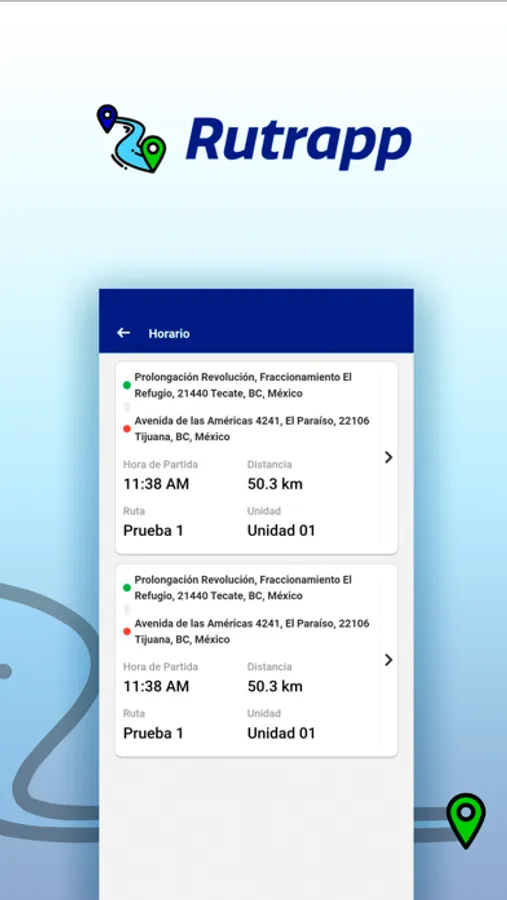 Aplicación móvil que te ayudara a gestionar el servicio de transportación de personal del sector privado. Al mismo tiempo la app mostrara cada ruta, los distintos horarios de paradas (pertenecientes a cada cliente/empresa) y solo estarán habilitadas en el horario correspondiente.