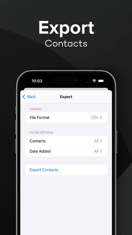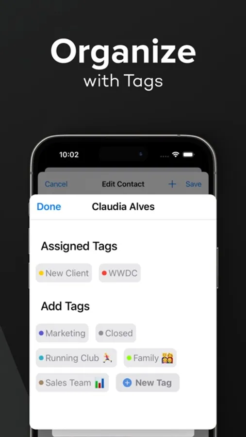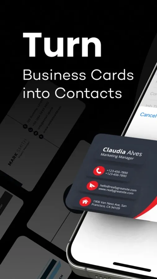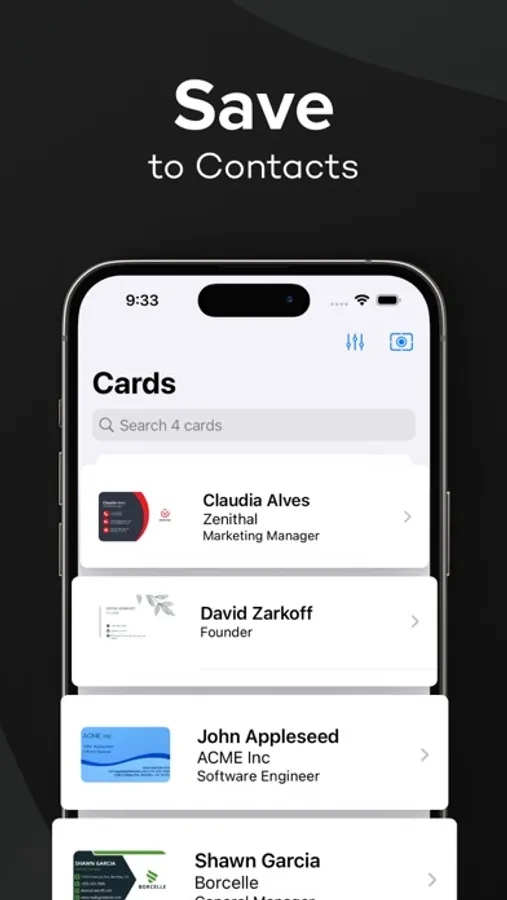 * save the contact information to the Contacts app, or just keep it saved only in the ScanBox app