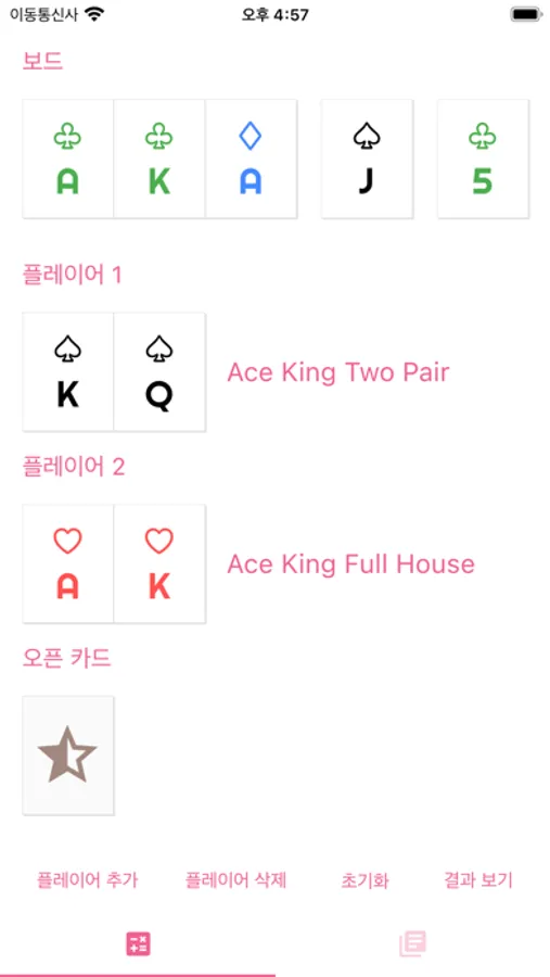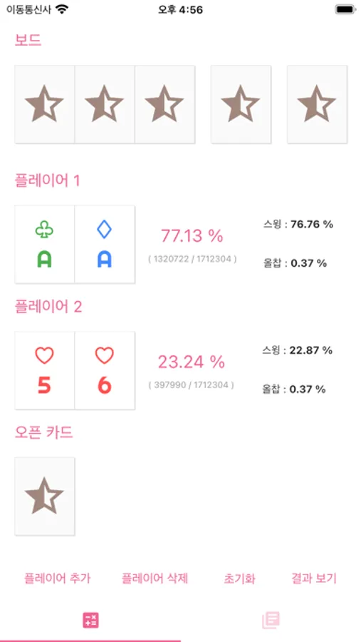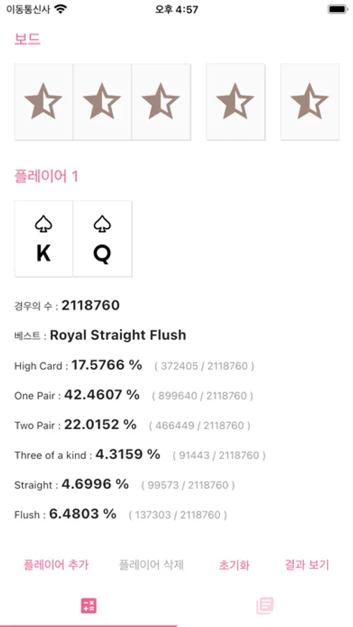 모든 경우의 수를 구하여 계산한 정확한 홀덤 확률 계산기 입니다.