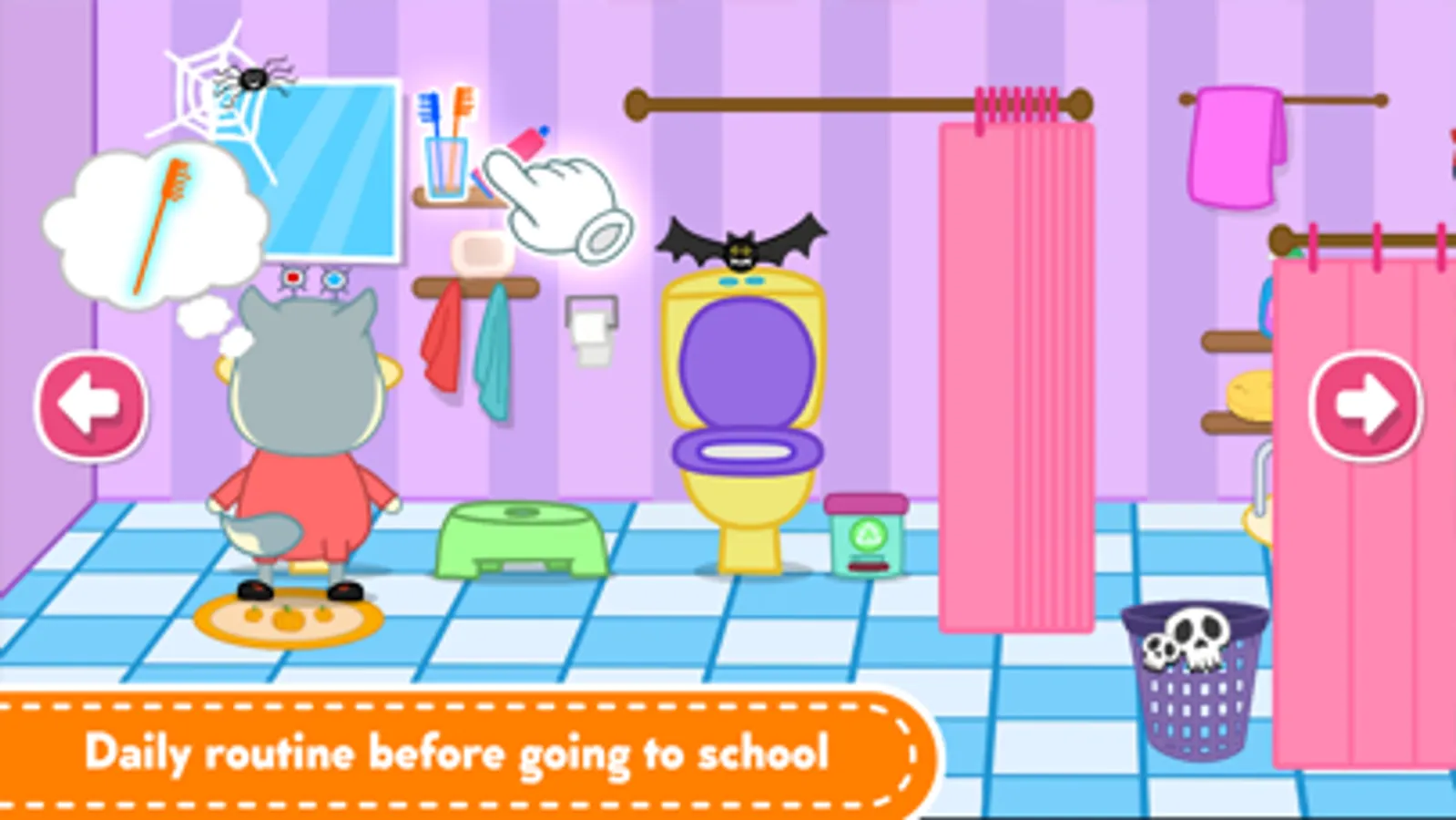 1. Personal hygiene after waking up: Help Wolfoo perform basic personal hygiene steps such as brushing teeth, washing face, bathing and going to the toilet