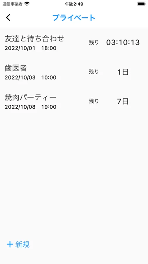 イベントまでの残り日数、残り時間をカウントダウンします。
