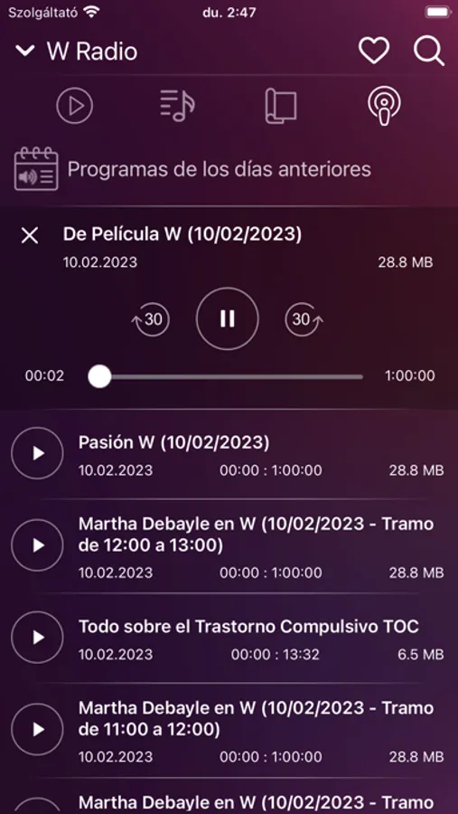 La aplicación IOS que está creada para nuestra página que se llama myradioenvivo.mx junta las radios online de México y tiene funciones similares a la interfraz web. Actualmente se puede escuchar más de 50 radios en linea Méxicó. Puedes ver la canción que estás escuchando en la radio en vivo y también puedes ver la imagen de portada de la canción. Puedes descubrir las canciones del mes anterior. Además, unas radios tienen una programación que te muestra las programas de una semana por adelantado. Algunas radios no son solo para escuchar sino también puedes verlas a través de una cámara de web. Busca la función en el encabezamiento de la subpágina de la radio. Puedes añadir las radios en vivo que escuchas a los favoritos para que las encuentres fácilmente. La versión de pago contiene grabación, identificación de canciones y no hay anuncios en la. Entre otros, puedes encontrar debajo las radios que son disponibles en nuestra página. Si no ves tu favorita, buscala con el icono de buscar en el encabezamiento de la aplicación. El buscador también soporta la búsqueda por voz, si no puedes teclear.