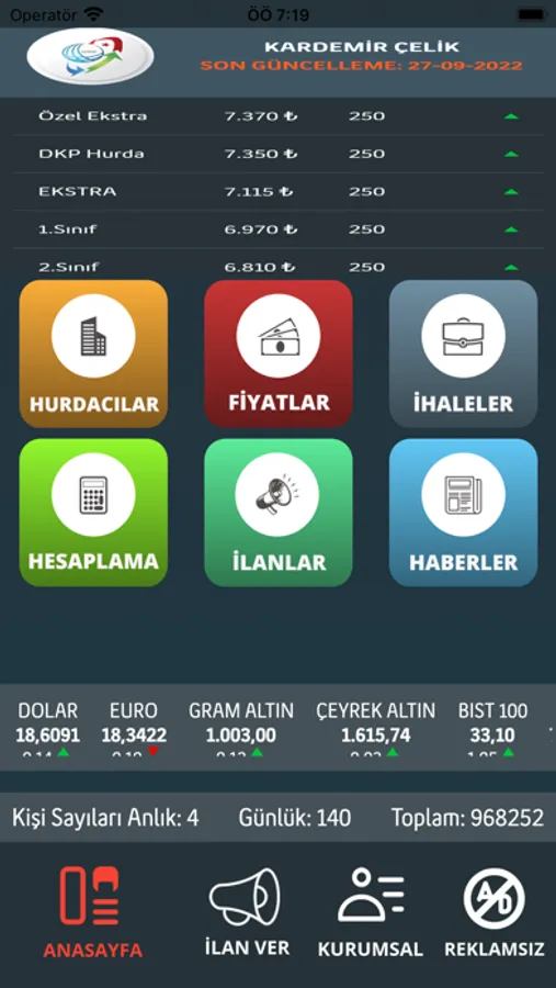Ülke genelindeki bütün hurda yıkım İhaleleri nerde ne zaman yapılıyor hepsi burada. Hurda demir alımı yapan bütün fabrikaların fiyatları da anlık olarak burada.