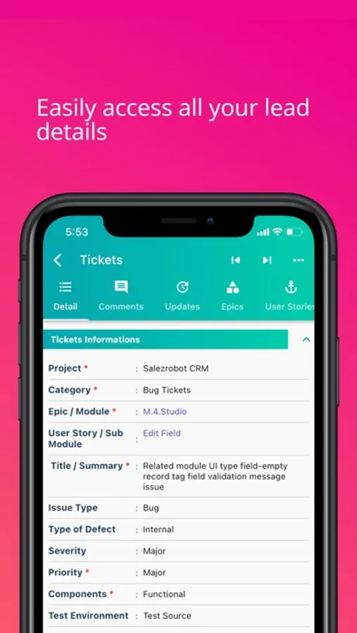 Salez Robot App will be helpful to access and update customers data from mobile like sales order pipeline, Leads,Customers Support, vendors, organisation data on the fly, right from the phone.