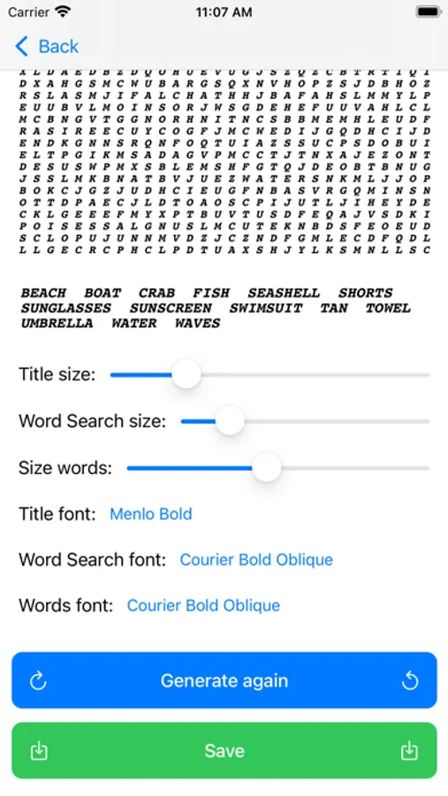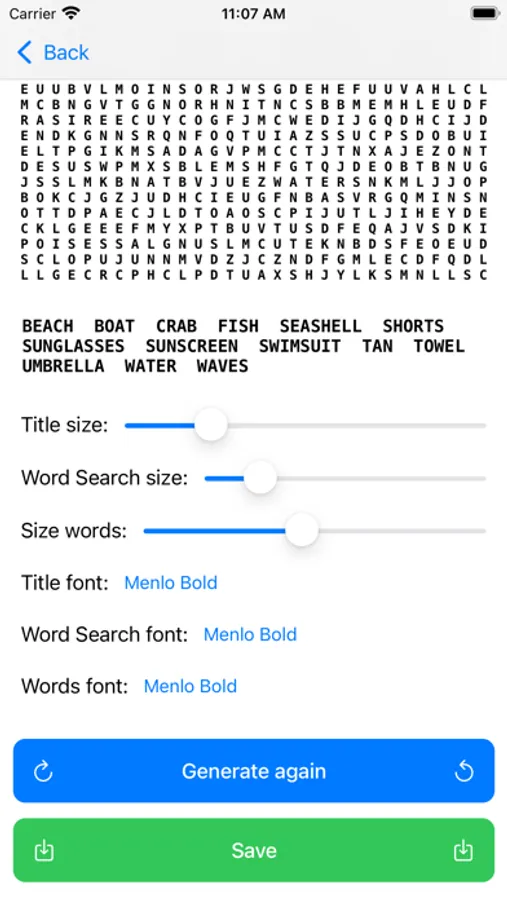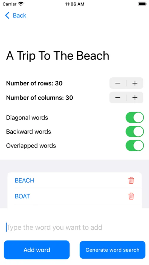 Create complete word searches. Choose the size of the soup, enter the words you want and the difficulty.