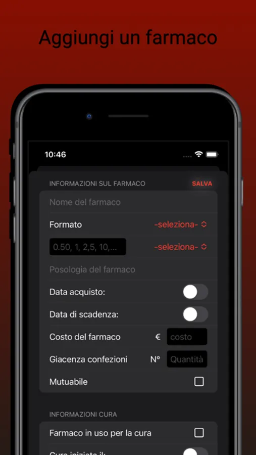 Gestisci i farmaci che hai in casa e le relative informazioni.