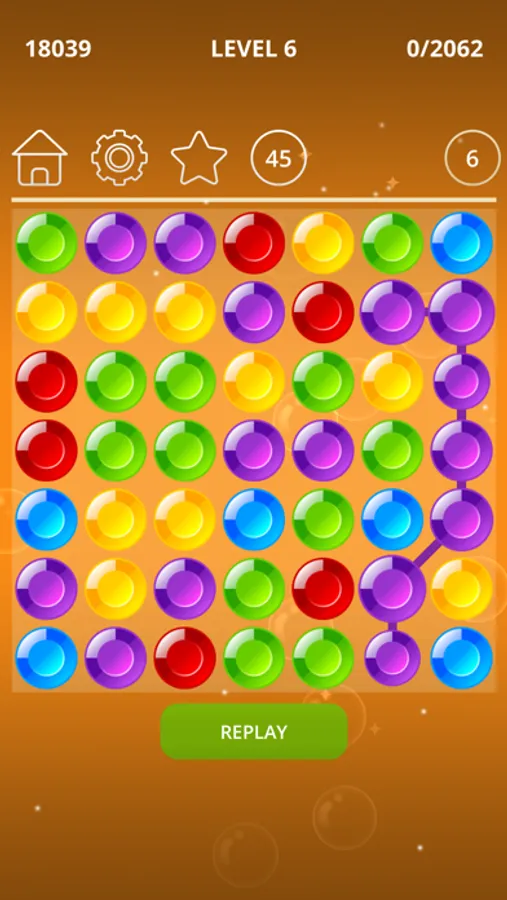 - Touch and drag to connect adjacent balls with the same colors