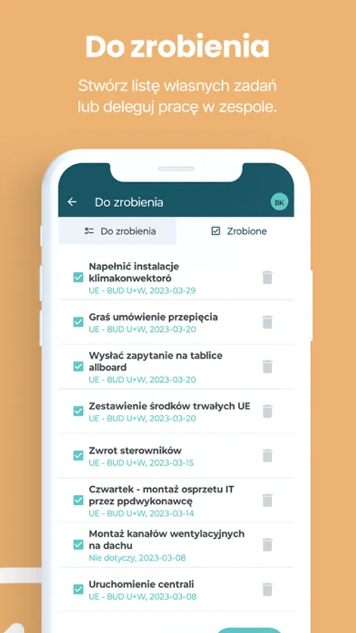 - Do zrobienia: Stwórz listę własnych zadań lub deleguj pracę w zespole;