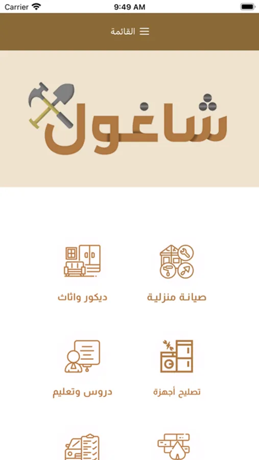 تطبيق شاغول يوفر للمستخدمين الوصول لمقدمي خدمات متنوعة مثل :