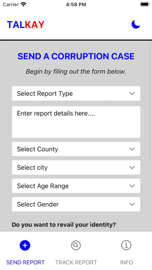 Talkay is a mobile and web application that provides a platform for citizens to report corruption allegations anywhere in Liberia. It enables those filing a report to upload or provide evidence of their corruption allegation in any file format with or without disclosing their identity on the platform.