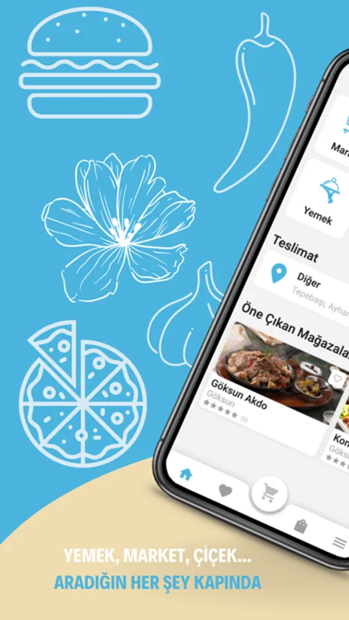 - İhtiyacın ister yemek olsun, ister market, ister çiçek olsun, ister medikal ürünler, ister manav olsun, ister kasap; esnaftano dakikalar içerisinde kapınızı çalsın!