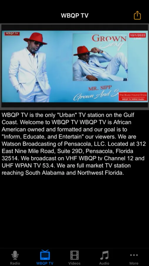 WBQP TV is the only "Urban" TV station on the Gulf Coast. Welcome to WBQP TV WBQP TV is African American owned and formatted and our goal is to "Inform, Educate, and Entertain" our viewers. We are Watson Broadcasting of Pensacola, LLC. Located at 312 East Nine Mile Road, Suite 29D, Pensacola, Florida 32514. We broadcast on VHF WBQP tv Channel 12 and UHF WPAN TV 53.4. We are full market TV station reaching South Alabama and Northwest Florida.